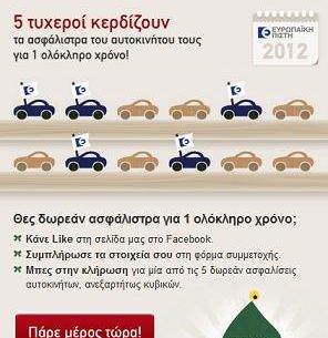 Η Ευρωπαϊκή Πίστη διοργανώνει διαγωνισμό στο facebook και σας δίνει τη δυνατότητα να κερδίσετε πέντε (5) χορηγούμενες δωρεάν ετήσιες ασφαλίσεις αυτοκινήτου, ανεξαρτήτως κυβικών αυτού.