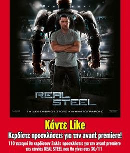 Ο Κωτσόβολος διοργανώνει διαγωνισμό και σας δίνει τη δυνατότητα να κερδίσετε 110 διπλές προσκλήσεις για την Avant Premiere της ταινίας “Real Steel” στην Αθήνα την Τετάρτη 30 Νοεμβρίου.