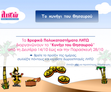 Τα Βρεφικά Πολυκαταστήματα ΛΗΤΩ διοργανώνουν το “Κυνήγι του Θησαυρού” και σας δίνουν τη δυνατότητα να κερδίστε 2 δωροεπιταγές 70€ έκαστη για αγορά προϊόντων.