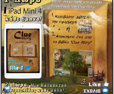 Το ClueStory διοργανώνει διαγωνισμό και σας δίνει τη δυνατότητα να κερδίσετε1 Ipad mini 4, κατασκευή Ιστοσελίδας κάθε μήνα και καπέλα Clue Story κάθε εβδομάδα!