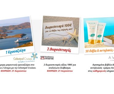 Οι εκδόσεις Ψυχογιός διοργανώνουν διαγωνισμό και σας δίνουν τη δυνατότητα να κερδίσετε μία 4ήμερη κρουαζιέρα, δωροεπιταγές για αγορές βιβλίων, 30 αντηλιακές κρέμες και 30 βιβλία σε έντυπη μορφή ή e-books!