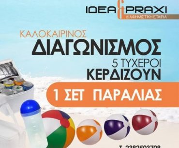 Η Διαφημιστική Εταιρία Ιδέα και Πράξη διοργανώνει διαγωνισμό και δίνει τη δυνατότητα σε 5 τυχερούς να κερδίσουν από ένα σετ παραλίας!