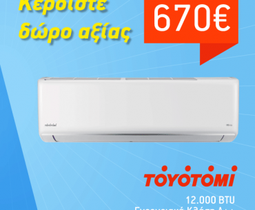 H Mega Euronics διοργανώνει διαγωνισμό και σας δίνει τη δυνατότητα να κερδίσετε ένα κλιματιστικό Toyotomi inverter αξίας 670€!