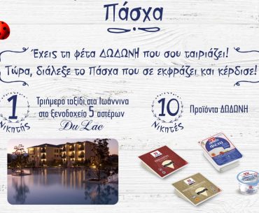 Η Δωδώνη διοργανώνει διαγωνισμό και δίνει τη δυνατότητα σε 11 τυχερούς να κερδίσουν ένα τριήμερο στα Ιωάννινα και 10 πακέτα με προϊόντα!