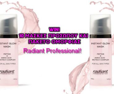 To beautyblog.gr διοργανώνει διαγωνισμό και σας δίνει τη δυνατότητα σε 10 τυχερές να κερδίσουν από μία μάσκα προσώπου Instant Glow της Radiant Professional και ένα πακέτο ομορφιάς για μια σούπερ τυχερή!
