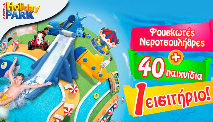 Έλα με το μαγιό σου στο Athens Holiday Park, βούτα στις νεροτσουλήθρες και απόλαυσε 44 πρωτότυπα παιχνίδια & αθλητικές δράσεις … με είσοδο 5€/άτομο! Το cheapis.gr σας προσφέρει ένα εισιτήριο εισόδου 5€/ άτομο (αξίας 10€ – έκπτωση 50%).