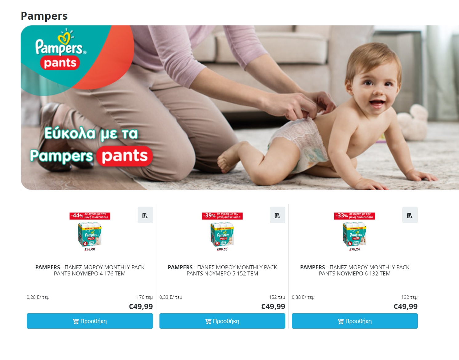 Έκπτωση έως -50% στις μηνιαίες συσκευασίες Pampers!