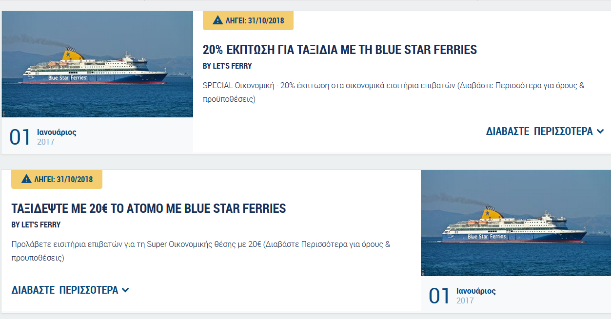 20% έκπτωση στα οικονομικά εισιτήρια επιβατών για ταξίδια με την Blue Star Ferries!