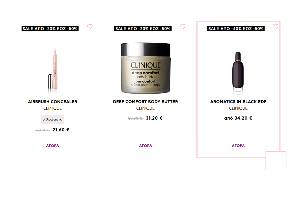 Με την αγορά 2 προϊόντων clinique, έκπτωση 40% και με την αγορά 3 προϊόντων και άνω, έκπτωση 50%!