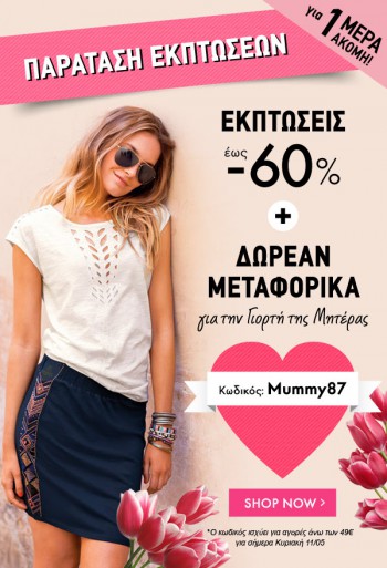 Με τον κωδικό Mummy87 επωφεληθείτε τις super προσφορές και σήμερα!