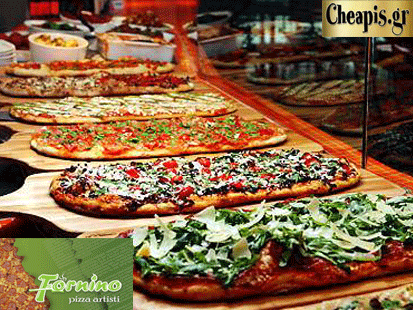 Το Cheapis.gr σε συνεργασία με τη Fornino pizza Artisti σας προσφέρει 2 κομμάτια pizza 20Χ30, επιλογή ανάμεσα σε 26 διαφορετικές γεύσεις και 2 αναψυκτικά της επιλογής σας, με μόλις 1 € (αξίας 10€ – έκπτωση 90%).