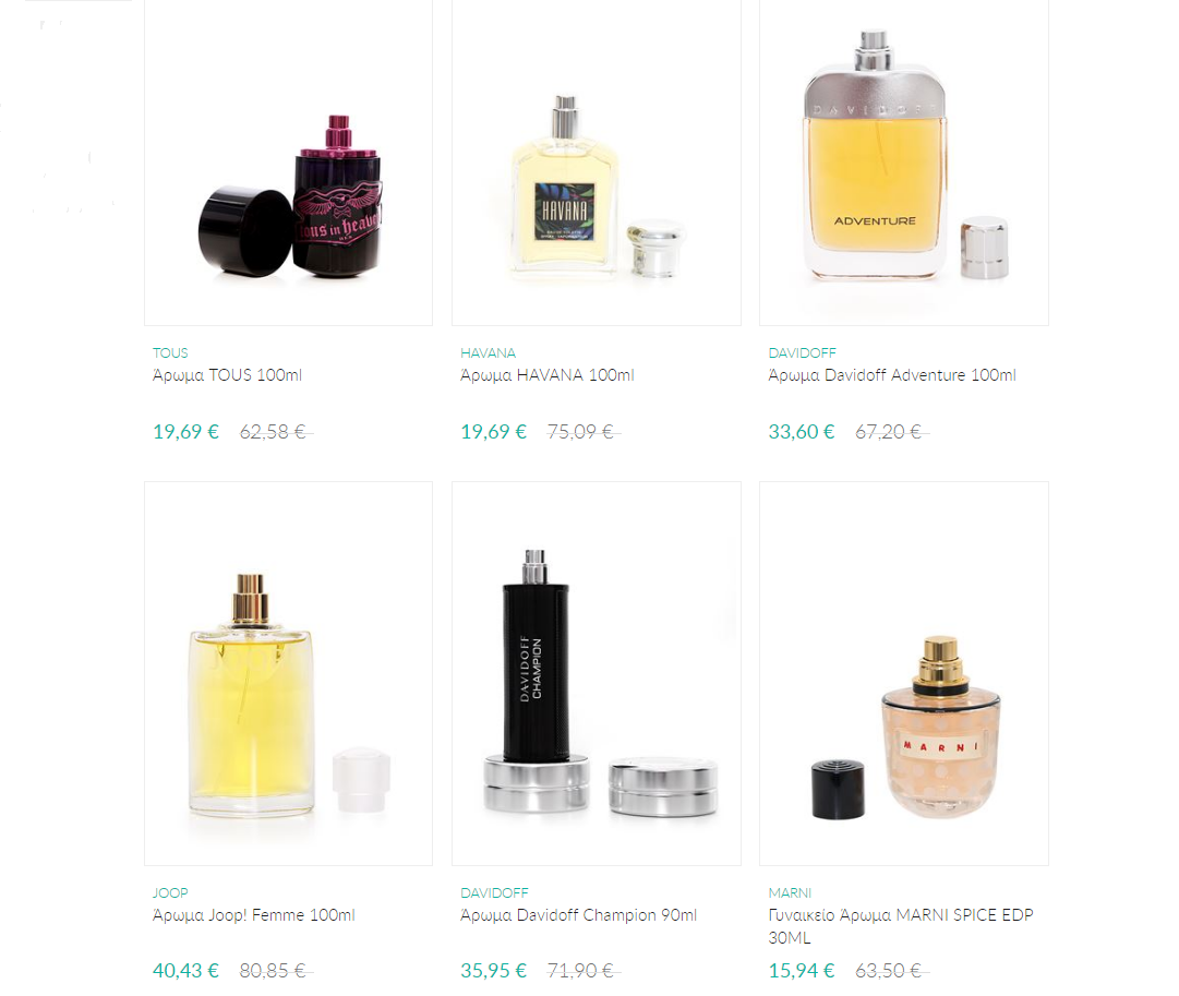 – έκπτωση έως 75% σε επώνυμα αρώματα