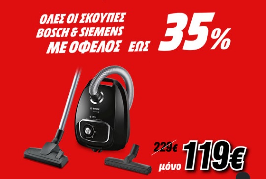 Τα Media Markt προσφέρουν σκούπα Bosch μόνο 119€ & όλες τις σκούπες Bosch & Siemens με όφελος έως -35%!