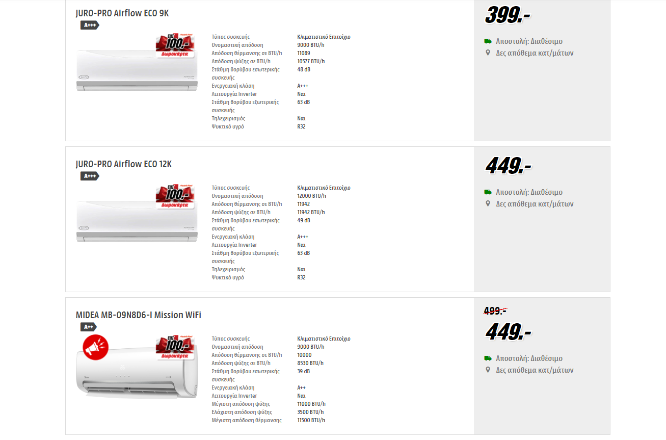 Δωροκάρτες έως 100€ σε κλιματιστικά & τιμές από 399€ στα Media Markt!