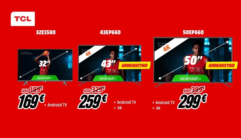 Tηλεοράσεις TCL με Android από 169€ στα Media Markt