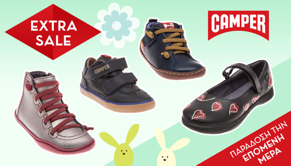 Τα παπούτσια Camper είναι γνωστά για τα μοναδικά σχέδια τους αλλά και για την άνεση που χαρίζουν στο περπάτημα. Το MelinaMay.com συγκέντρωσε τα καλύτερα σχέδια για τους μικρούς μας φίλους με έκπτωση έως -50%. Κάνε σήμερα την παραγγελία σου από το MelinaMay.com και θα τα έχεις κοντά σου την επόμενη μέρα. Κάνε το καλύτερο πασχαλινό δώρο στους μικρούς μας φίλους!