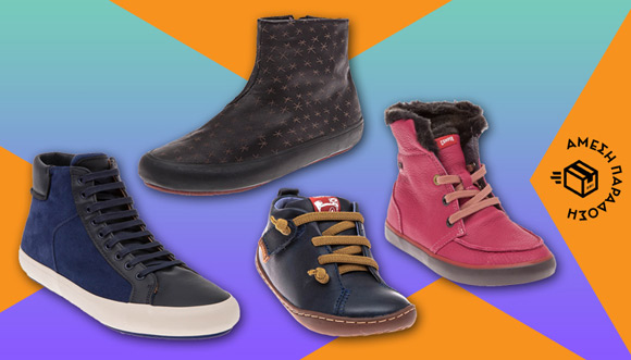 Μας τα ζήτησες επίμονα και εμείς δεν μπορούμε να σου αρνηθούμε τίποτα: τα αγαπημένα σου γυναικεία, ανδρικά και παιδικά παπούτσια Camper είναι και πάλι εδώ, φορτσάτα και δυναμικά για να ντύσουν όλη την οικογένεια με τον καλύτερο και πιο στιλάτο τρόπο! Βρες εδώ τα γυναικεία μποτάκια που είχες βάλει στο μάτι (έλα, παραδέξου το), flat παπούτσια αλλά και μπότες που σου κλέβουν την καρδιά. Απόλυτα urban και οι προτάσεις ανδρικών παπουτσιών της Camper με μποτάκια που φοριούνται σε κάθε περίπτωση, αλλά και αθλητικά Pelotas που θα γίνουν your next best friend! Η συλλογή παπουτσιών συμπληρώνεται φυσικά από τα τέλεια παιδικά μποτάκια Camper με κουμπιά, κεντήματα, καρδιές, και.. τσαχπινιά που περισσεύει!
