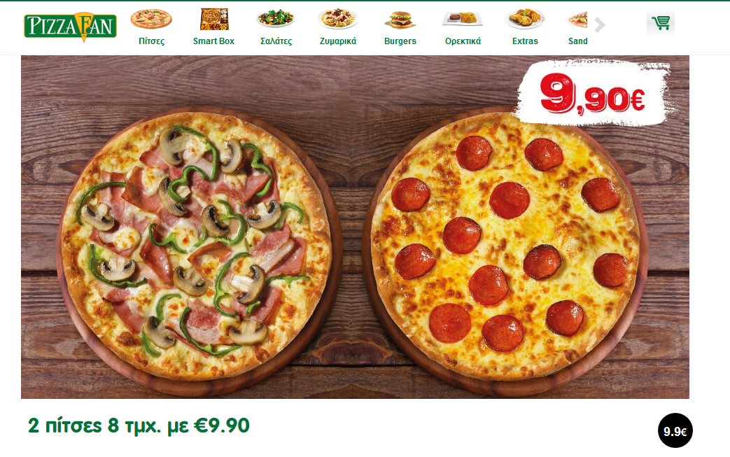 2 πίτσες 8 τεμαχίων, μόνο με 9.90€!