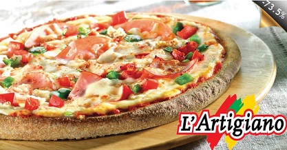 Το cheapis.gr σας προσφέρει μία μεγάλη pizza L’Artigiano 30 εκ.(8τμχ) με 4 υλικά της αρεσκείας σας, μόνο με 3,49€ (αξίας 13,17€ – έκπτωση 73,5%).