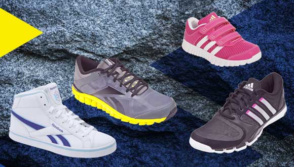 H συλλογή αθλητικών παπουτσιών Adidas και Reebok ντύνει όλη την οικογένεια: ξεκινάει από τα παιδικά αθλητικά μποτάκια για trendy πιτσιρίκους και πιτσιρίκες, συνεχίζει με τα αθλητικά παπούτσια με φούξια λεπτομέρειες για γυναίκες και καταλήγει φυσικά στα μαύρα και φλούο αθλητικά για άντρες!