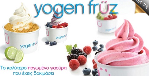 Το cheapis.gr σας δίνει την ευκαιρία να απολαύσετε παγωμένο γιαούρτι Yogen Fruz 300gr, σε μοναδικούς απολαυστικούς συνδυασμούς γεύσεων με toppings, φρέσκα φρούτα ή bain marie, μόνο 2,90€ (αξίας 6€ – έκπτωση 51,7%).