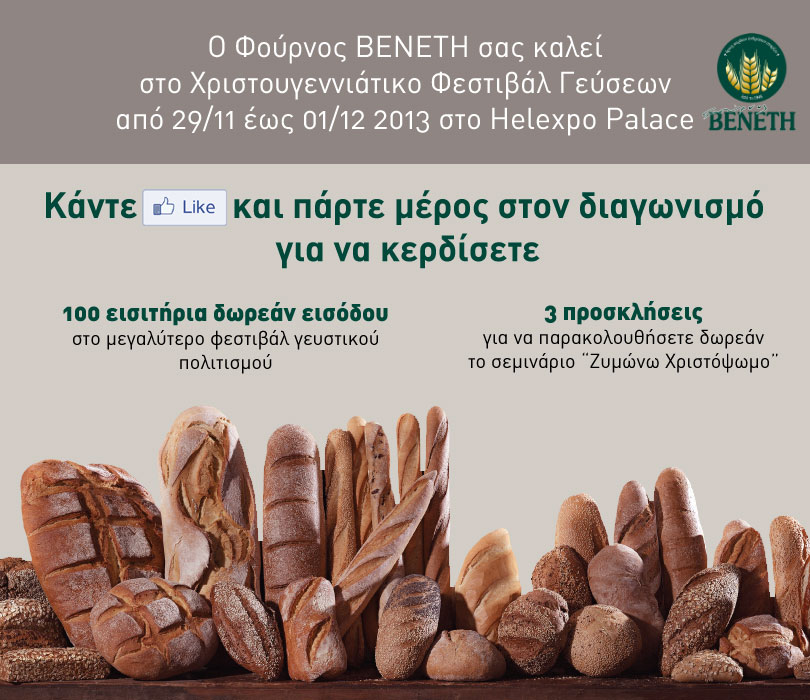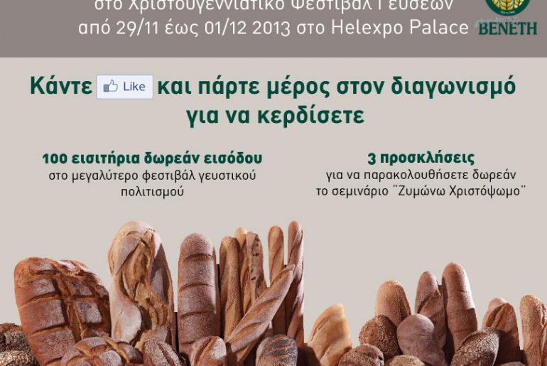 Διαγωνισμός Φουρνος ΒΕΝΕΤΗ με δώρο 100 διπλά εισιτήρια δωρεάν εισόδου & 3 προσκλήσεις για το σεμινάριο “Ζυμώνω Χριστόψωμο”