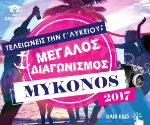 Πάρε μέρος στον καλοκαιρινό διαγωνισμό που διοργανώνει το ΙΙΕΚ American Education για όλους του μαθητές της Γ’ Λυκείου και ίσως είσαι εσύ ο τυχερός ή η τυχερή που θα κερδίσει ένα μοναδικό διήμερο στη Μύκονο με έναν φίλο σου ή μια φίλη σου, εντελώς ΔΩΡΕΑΝ!