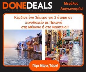 Το donedeals.gr διοργανώνει διαγωνισμό και σας δίνει τη δυνατότητα να κερδίσετε 2 διανυκτερεύσεις με πρωινό για 2 άτομα στη Μύκονο ή στο Ναύπλιο!