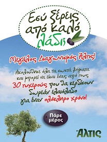 Το Άλτις Ελαιόλαδο διοργανώνει διαγωνισμό και δίνει τη δυνατότητα σε 30 τυχερούς να κερδίσουν από 25 λίτρα Άλτις Κλασικό.