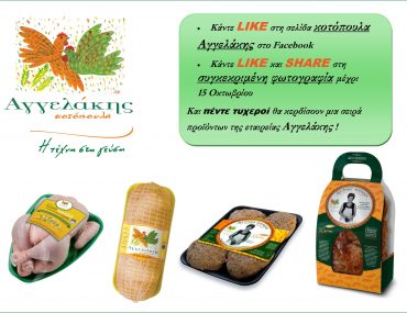 Η σελίδα Αγγελάκης κοτόπουλα διοργανώνει διαγωνισμό και δίνει τη δυνατότητα σε 5 τυχερούς να κερδίσουν από μια σειρά προϊόντων Αγγελάκης!