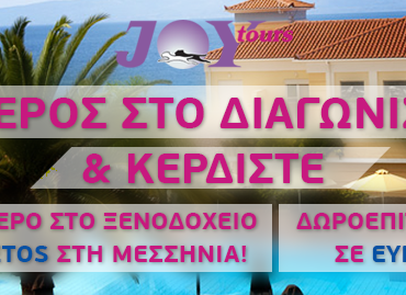 Το JoyTours.gr διοργανώνει διαγωνισμό και σας δίνει τη δυνατότητα να κερδίσετε ένα τριήμερο για 2 άτομα στο ξενοδοχείο Akti Taygetos στη Μεσσηνία καθώς και δωροεπιταγές για ταξίδια στην Ευρώπη και την Αμερική!