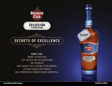 Habaneros, μπείτε στον κόσμο του Selecciόn de Maestros & ανακαλύψτε τα μυστικά που το κάνουν να υπερέχει! Ένας τυχερός θα κερδίσει ένα μοναδικό ταξίδι για 2 άτομα στην ΚΟΥΒΑ για να μάθει τα πάντα για ένα από τα καλύτερα ρούμια στον κόσμο ενώ 3 ακόμα τυχεροί κάθε εβδομάδα θα κερδίσουν φιάλες Selecciόn de Maestros!