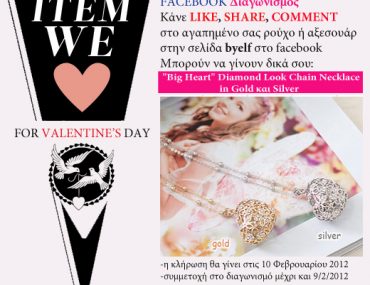H μέρα του Αγίου Βαλεντίνου πλησιάζει και το byelf.com διοργανώνει διαγωνισμό και σας δίνει τη δυνατότητα να κερδίσετε 2 glamour κολιέ σε σχήμα καρδιάς.