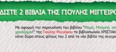 Η σελίδα Xristakis Books – Βιβλιοπωλείο διοργανώνει διαγωνισμό και σας δίνει τη δυνατότητα να κερδίσετε 2 βιβλία της Γιούλης Μιγγείρου!