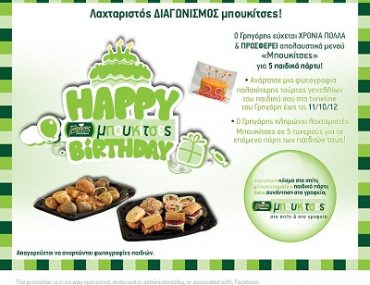 Ο Γρηγόρης Μικρογεύματα διοργανώνει διαγωνισμό και σας δίνει τη δυνατότητα να κερδίσετε 5 παιδικά μενού για παιδικά πάρτυ για 20 άτοµα, που περιλαμβάνουν : 25 τεµάχια κουρού τυροπιτάκια, 25 τεµάχια πεινιρλάκια, 2 σαλάτες catering, 20 τεµάχια τριγωνάκια γαλοπούλα, 24 µπουκίτσες tortilla γαλοπούλα.