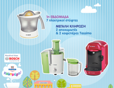 Η σελίδα ΔΕΛΤΑ moms διοργανώνει διαγωνισμό και σας δίνει τη δυνατότητα σε 20 τυχερούς να κερδίσουν από μια πρόσκληση για τη συμμετοχή τη δική τους και μέχρι 2 παιδιών (ηλικίας άνω των 5 ετών) στην εκδήλωση «Μαμαδομαγειρέματα», που θα λάβει χώρα στις εγκαταστάσεις της Bosch (17ο χλμ Ε.Ο. Αθηνών – Λαμίας & Ποταμού 20, Κηφισιά) το Σάββατο 29 Νοεμβρίου στις 11.00 το πρωί.