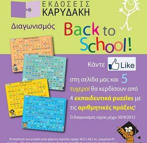 Οι Εκδόσεις Καρυδάκη διοργανώνουν διαγωνισμό και δίνουν τη δυνατότητα σε 5 τυχερούς να κερδίσουν από 4 εκπαιδευτικά puzzles με τις αριθμητικές πράξεις.