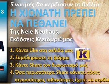 Οι «Εκδόσεις Κλειδάριθμος» διοργανώνουν διαγωνισμό «Κερδίστε ένα βιβλίο!» με δώρο 5 βιβλία Η ΧΙΟΝΑΤΗ ΠΡΕΠΕΙ ΝΑ ΠΕΘΑΝΕΙ, της συγγραφέως Nele Neuhaus για 5 νικητές.