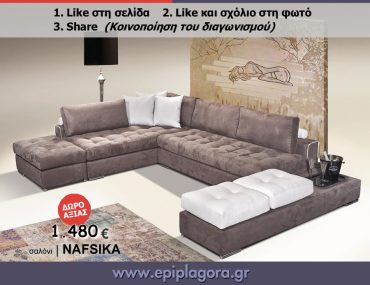 H Επιπλαγορά Home Styling διοργανώνει διαγωνισμό και σας δίνει τη δυνατότητα να κερδίσετε ένα σαλόνι Nafsika, ελληνικής κατασκευής από ξύλο οξιάς με αδιάβροχο ύφασμα, αξίας 1.480€!