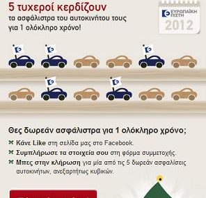 Η Ευρωπαϊκή Πίστη διοργανώνει διαγωνισμό στο facebook και σας δίνει τη δυνατότητα να κερδίσετε πέντε (5) χορηγούμενες δωρεάν ετήσιες ασφαλίσεις αυτοκινήτου, ανεξαρτήτως κυβικών αυτού.