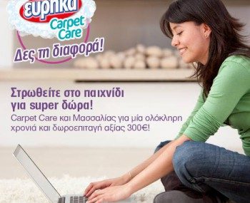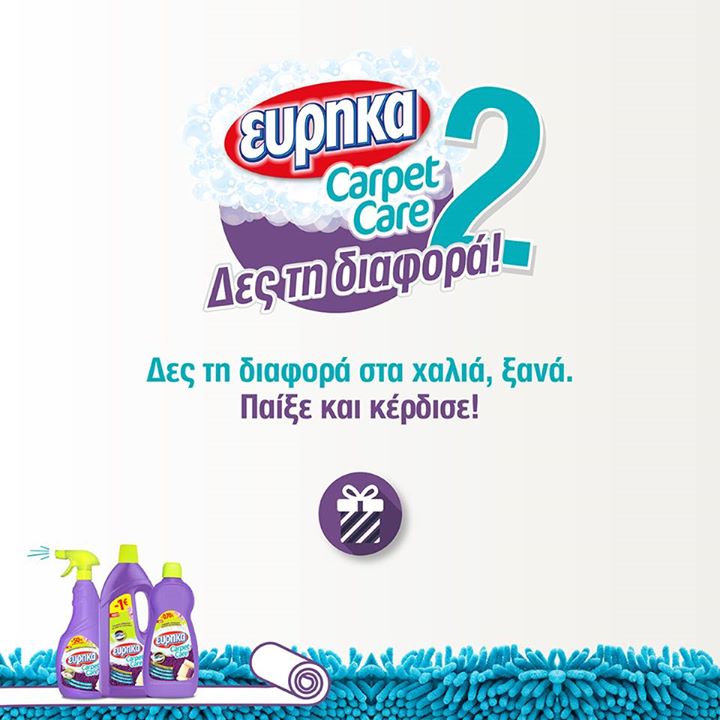 Το Ευρηκα διοργανώνει διαγωνισμό και δίνει τη δυνατότητα σε 1 υπερτυχερό να κερδίσει μία δωροεπιταγή αξίας 300€ και τα καθαριστικά χαλιών Εύρηκα Carpet Care μαζί με τα υγρά απορρυπαντικά ρούχων Εύρηκα Μασσαλίας μιας ολόκληρης χρονιά. Επιπλέον 6 νικητές (2 κάθε εβδομάδα) θα κερδίσουν τα καθαριστικά χαλιών Εύρηκα Carpet Care και μαζί τα υγρά απορρυπαντικά ρούχων Εύρηκα Μασσαλίας για μία ολόκληρη χρονιά!
