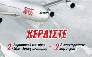 H Swiss διοργανώνει διαγωνισμό και δίνει τη δυνατότητα σε 5 τυχερούς να κερδίσουν από 2 αεροπορικά εισιτήρια μετ΄επιστροφής σε Economy Class προς Ζυρίχη ή Γενεύη και ο ένας από τους 5 θα κερδίσει επιπλέον και 2 διανυκτερεύσεις σε οποιαδήποτε πόλη της Ελβετίας επιθυμεί!