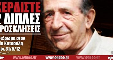 Το Ogdoo.gr εξασφάλισε για τους αναγνώστες του 2 διπλές προσκλήσεις για τη μουσική παράσταση-αφιέρωμα στον Ηλία Κατσούλη με τίτλο ”Τα φτερά του έρωτα…” στον ΙΑΝΟ την Πέμπτη 31/05/2012.