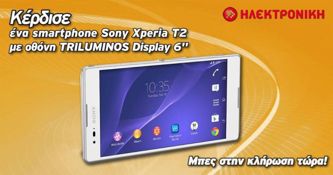 Η ΗΛΕΚΤΡΟΝΙΚΗ διοργανώνει διαγωνισμό και σας δίνει τη δυνατότητα να κερδίσετε ένα smartphone Sony Xperia T2.