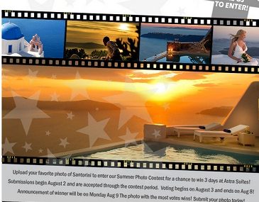 Το ξενοδοχείο Astra Santorini διοργανώνει διαγωνισμό και σας δίνει τη δυνατότητα να κερδίσετε 3 ημέρες διαμονή στο πεντάστερο ξενοδοχείο (top 25 hotels in the world by tripadvisor) Astra Suites – Santorini Ημεροβίγλι.