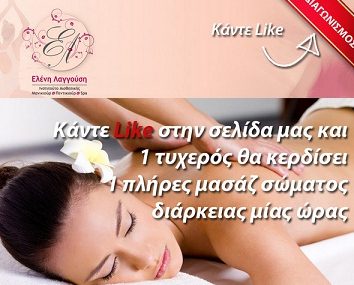 Το Ινστιτούτο Αισθητικής Ελένη Λαγγούση διοργανώνει διαγωνισμό και σας δίνει τη δυνατότητα να κερδίσετε ένα πλήρες μασάζ σώματος, διάρκειας μίας ώρας.