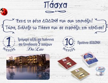 Η Δωδώνη διοργανώνει διαγωνισμό και δίνει τη δυνατότητα σε 11 τυχερούς να κερδίσουν ένα τριήμερο στα Ιωάννινα και 10 πακέτα με προϊόντα!