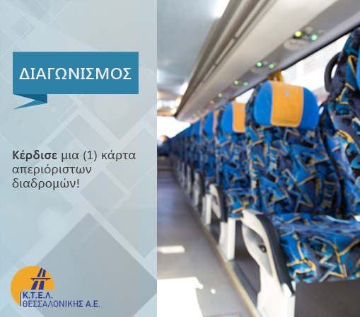 To ΚΤΕΛ Θεσσαλονίκης Α.Ε. διοργανώνει διαγωνισμό και σας δίνει τη δυνατότητα να κερδίσετε μία ετήσια κάρτα απεριόριστων διαδρομών για το δρομολόγιο Θεσσαλονίκη – Αθήνα – Πειραιά