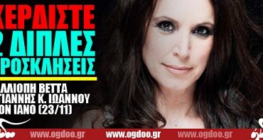Το Ogdoo.gr εξασφάλισε για τους αναγνώστες του δύο διπλές προσκλήσεις με κρασί ή μπύρα για τη συναυλία της Καλλιόπης Βέττα με τον Γιάννη Κ. Ιωάννου στον Ιανό, στις 23 Νοεμβρίου 2012.