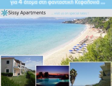 Το sissyapartments.gr διοργανώνει διαγωνισμό και σας δίνει τη δυνατότητα να κερδίσετε 7 ημέρες και 6 διανυκτερεύσεις στο κατάλυμα Sissy Apartments (Λάσση, Κεφαλονίας) από την Δευτέρα, 18/08/2014 έως την Κυριακή, 24/08/2014.